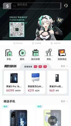 1、下载安装黑鲨商城app后,打卡软件进入【首页】功能,我们就能看到一些热门的商品分类,如新品配件、爆款、手机等。