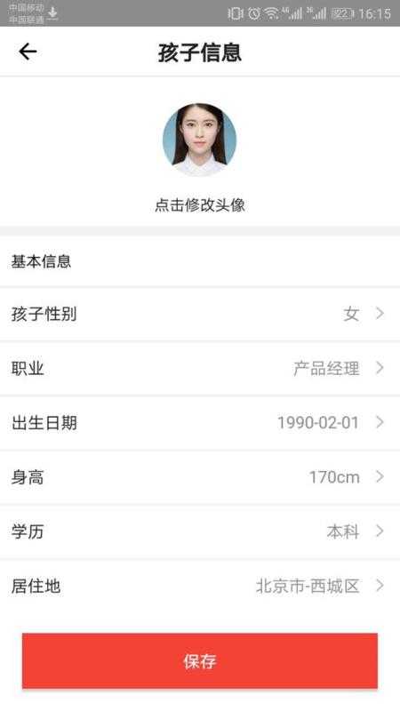 进入个人中心,可以查看自的资料,可以进行编辑