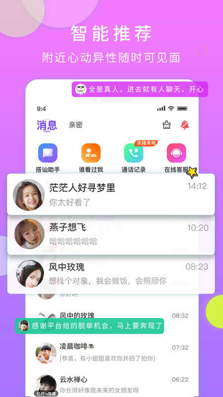 1、基于人工智能的推荐算法,让你很快找到和你兴趣相投的人。