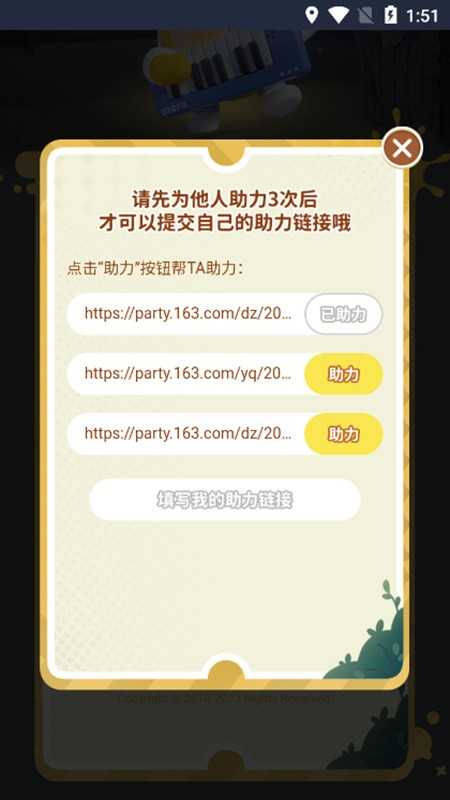 1、每名玩家需点击助力3次之后,才能提交自己的助力链接。