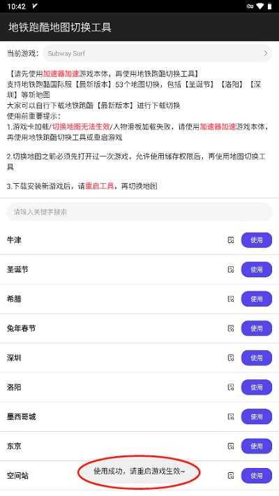 地铁跑酷地图切换工具最新版是一款专为地铁跑酷游戏玩家设计的辅助工具。软件的主要功能是帮助玩家在游戏中自由切换地图。它涵盖了地铁跑酷游戏中已经推出的多个地图场景,玩家只需通过简单的操作,即可选择并切换到自己喜欢的地图进行游戏。