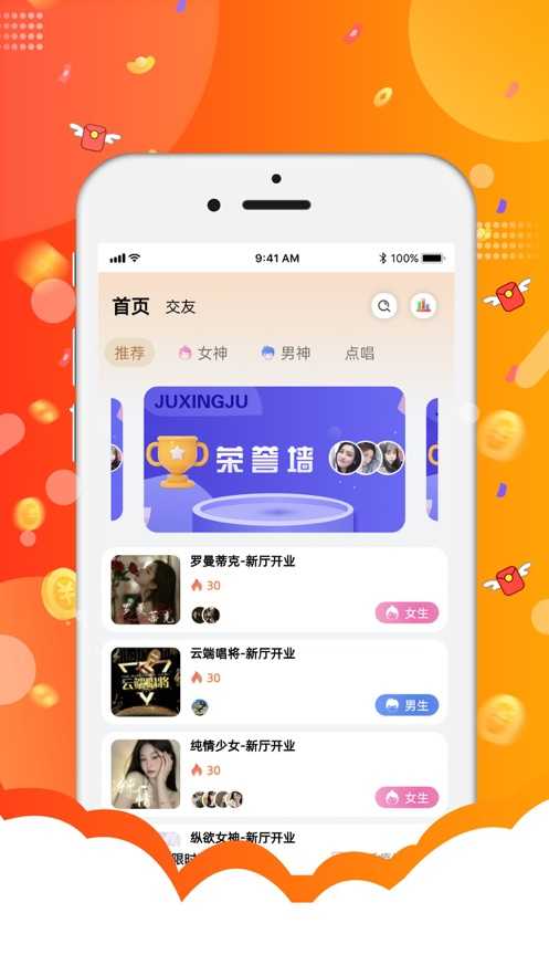 巨星语音是一款十分受欢迎的语音交友软件,全新语音交友平台,在线聊天互动,轻松交友,结识更多有趣的人,满足用户交友需求,随时随地轻松聊天,更轻松交友。