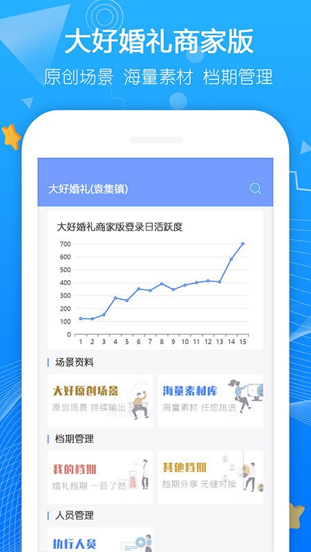 大好商家版手机版是一款为商家打造的全新办公服务软件,在这里能够的将详细的数据都进行管理,同时还可以随时记录所有的信息,包括档期、人员、以及各种材料等都可以进行记录,方便快捷,轻松就可以管理,有需要的话就来下载试试吧!