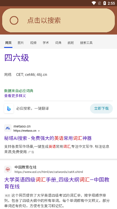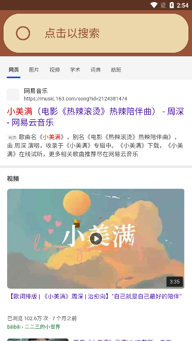 3、就会出现搜索框,在搜素框中输入关键词或者网址页面。