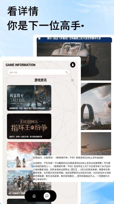 2、翻看为你推荐的游戏资讯,并能通过搜索查看资讯