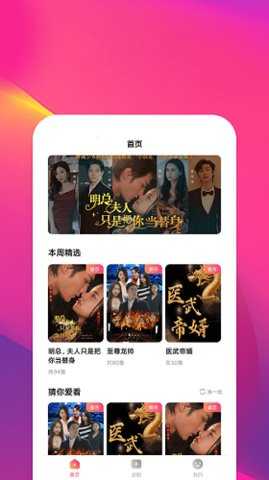 鲸鱼短剧最新版是一款高品质综合类视频产品,整合全网卫视及全网热播内容,为用户提供优质正版的视频资源。APP内的视频都是高清显示,全部都可以无广告观看,此外还有贴心的收藏和推荐功能,欢迎大家前来体验!