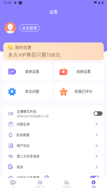 将录屏悬浮窗功能开启可以将录屏功能悬浮显示,轻松操作其他应用;