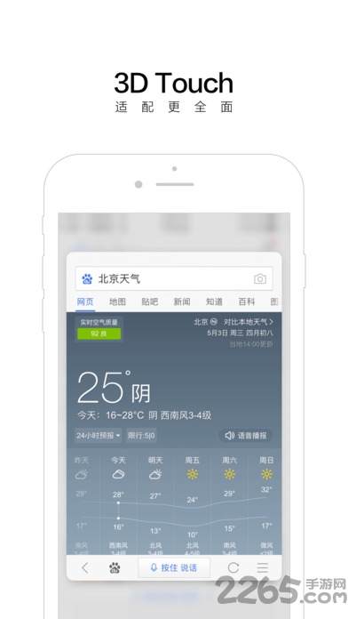 掌上百度历史版本是一款最好用,最直接,最安全的中文手机搜索引擎,强大的内核引擎,畅通的游戏版块以及全新的界面,贴心的插件,帮助网民更好的体验网络生活。如果你也有需要的话,赶紧来2265安卓网下载吧!