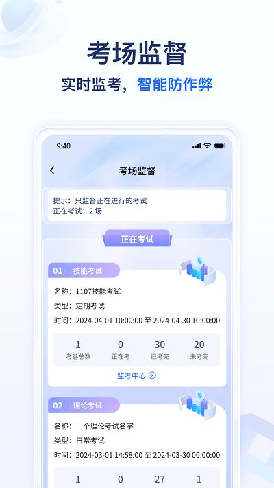 3、参加考试或考核时,系统会开启监考模式,需按要求完成答题并注意遵守防作弊规则。