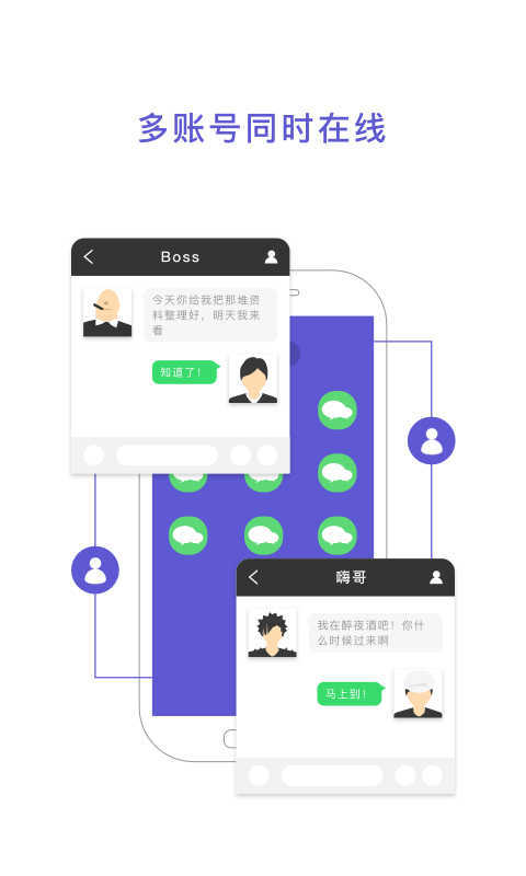 2、多个社交账号同时在线,开启常驻后台/收发消息更及时,让您工作生活两不误。