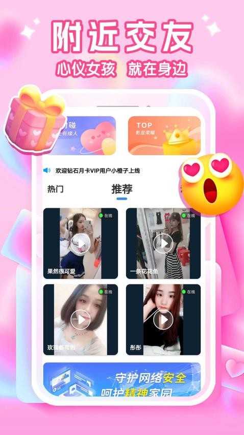为用户推荐有很多热门在线的网友,用户可在热门推荐专区查找友人在线聊天互动。