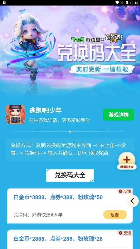 1、打开逃跑吧少年礼包工具,选到兑换码大全,点击复制按钮。