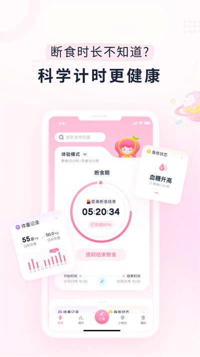 -为你展现每日的断食过程可视化数据,通过断食追踪和记录体重,见证身体的变化过程