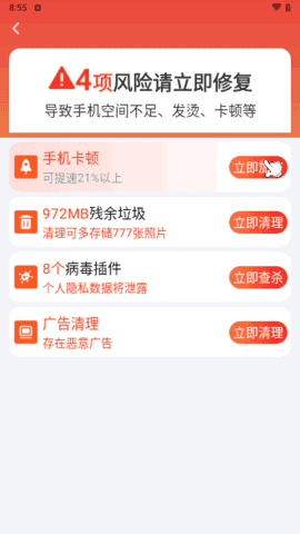 1、有很多非常实用的手机清理功能,可以快速清除各种内存浪费、缓存等。