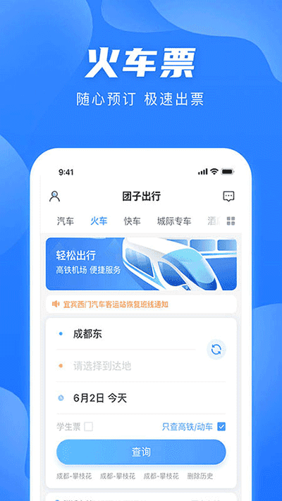 团子出行提供全面的出行服务,包括汽车票和火车票预订、城际快车、包车服务、景区门票预定等。软件通过规范化运营,有效降低客运站的信息化运营成本,同时提升服务水平。同时坚持定制化出行理念,让用户享受专属快捷服务,实现无需出门和排队的便捷买票体验。