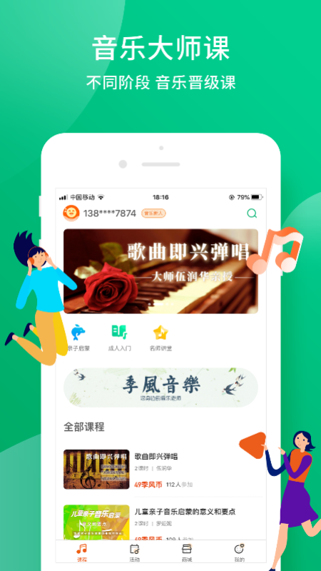 5、家庭音乐课堂:为用户提供高效、系统的家庭音乐学习方案;