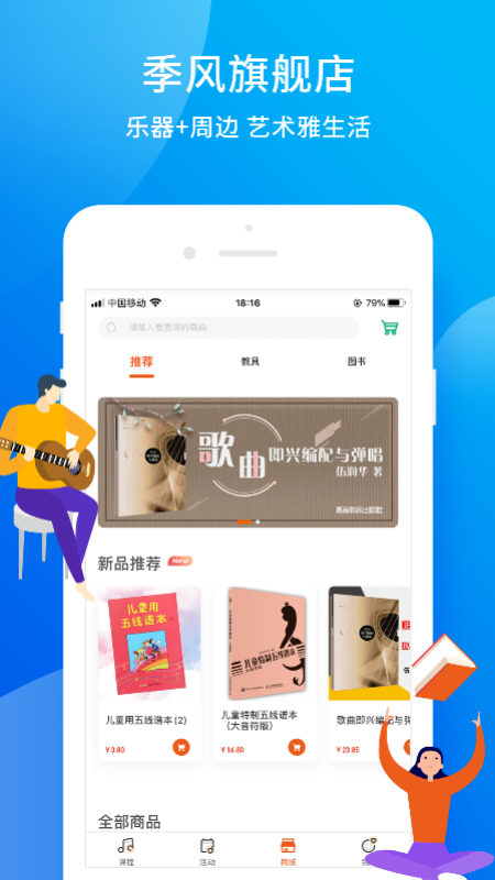 3、设有专属商城,提供多种乐器及相关音乐用品购买服务;