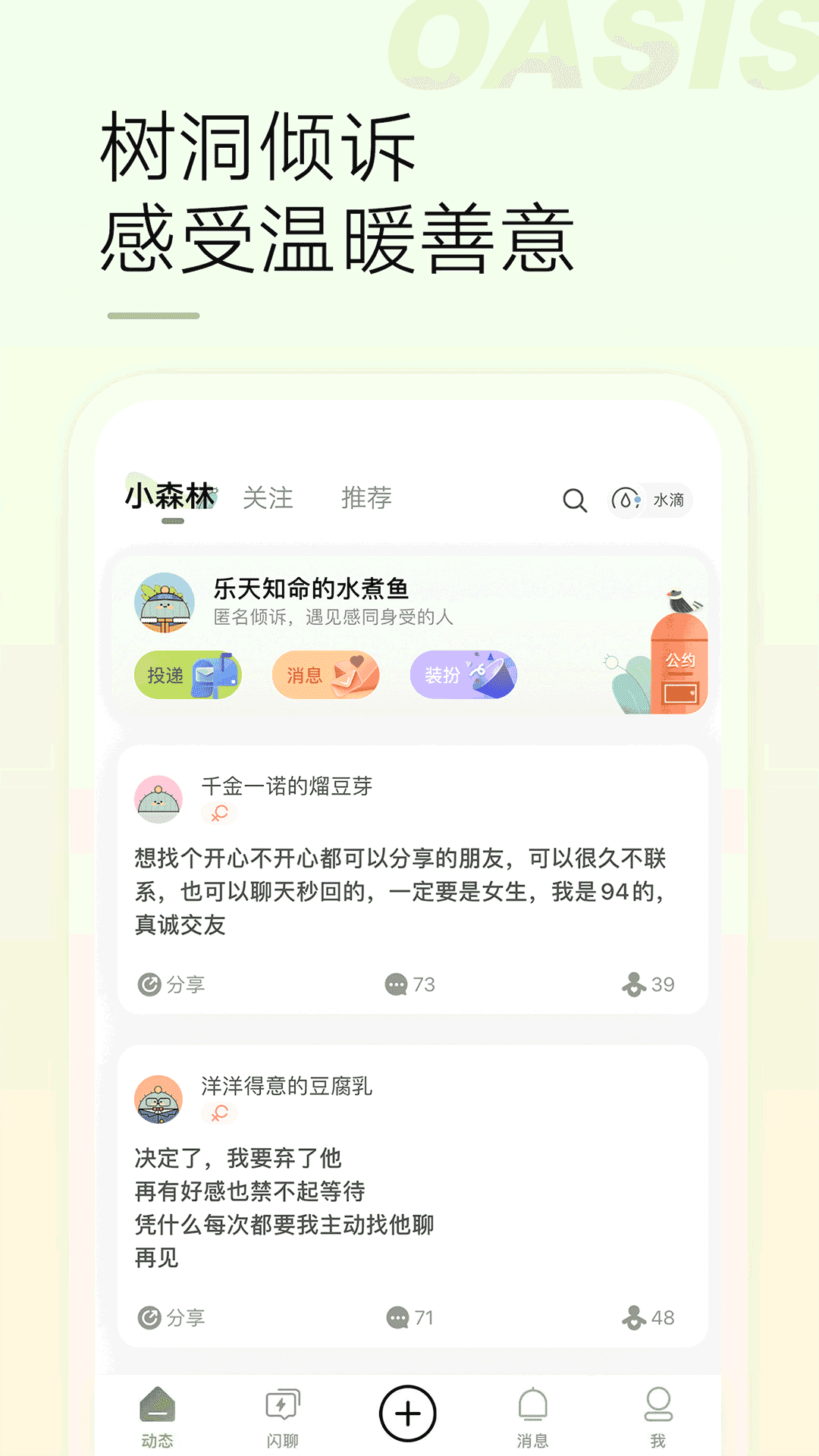 圈子随日子而越滚越大,但只有和心灵契合的朋友一起才不孤单,在绿洲,和三观一致、性格互补、化学反应100分的人做朋友,找到合拍的TA!