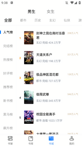 书架管理:用户可以管理自己的书架,轻松添加、删除和整理收藏的小说。