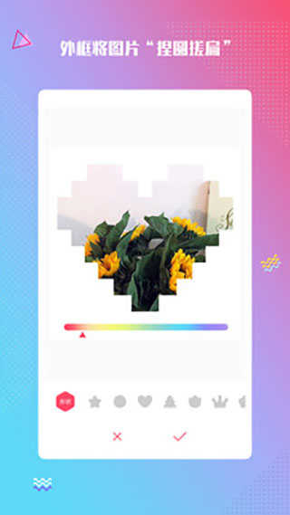 4、点击外框按钮,即可以选择星星、圆形、爱心、皇冠等外框,改变图片的形状