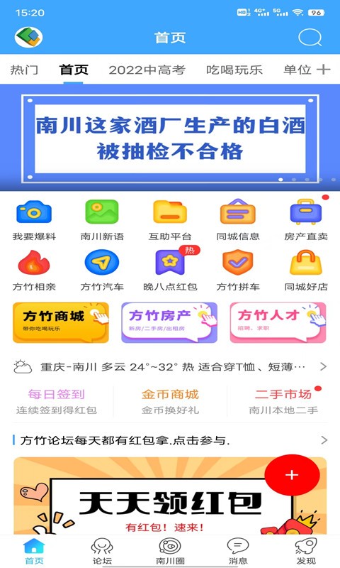 方竹论坛手机版是一款很好用的论坛软件,主要面向重庆南川方竹地区的用户们,在这里有着非常多的服务可以享用,这里用户们可以在线查看当地的资讯,而且这里还能找房子,找美食,还有一些视频可以查看,用起来十分的不错,感兴趣的朋友们快来下载体验吧!