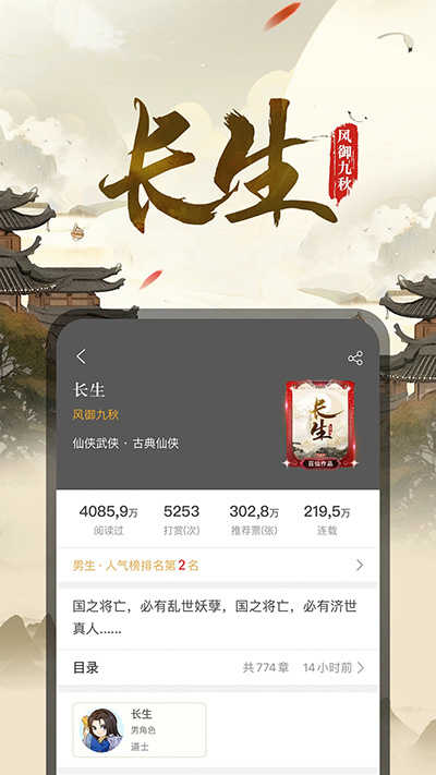 1、在17K小说app中找到自己喜欢的小说。