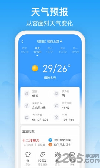专业、贴心的天气APP,为2265用户提供及时、准确和全面的天气服务。您可查看全国各地的实时天气信息,24小时天气预报、未来15天天气预报、空气质量指数、温度趋势、pm2.5等天气信息。同时我们提供穿衣、紫外线、舒适度等生活指数,为您的健康生活保驾护航。