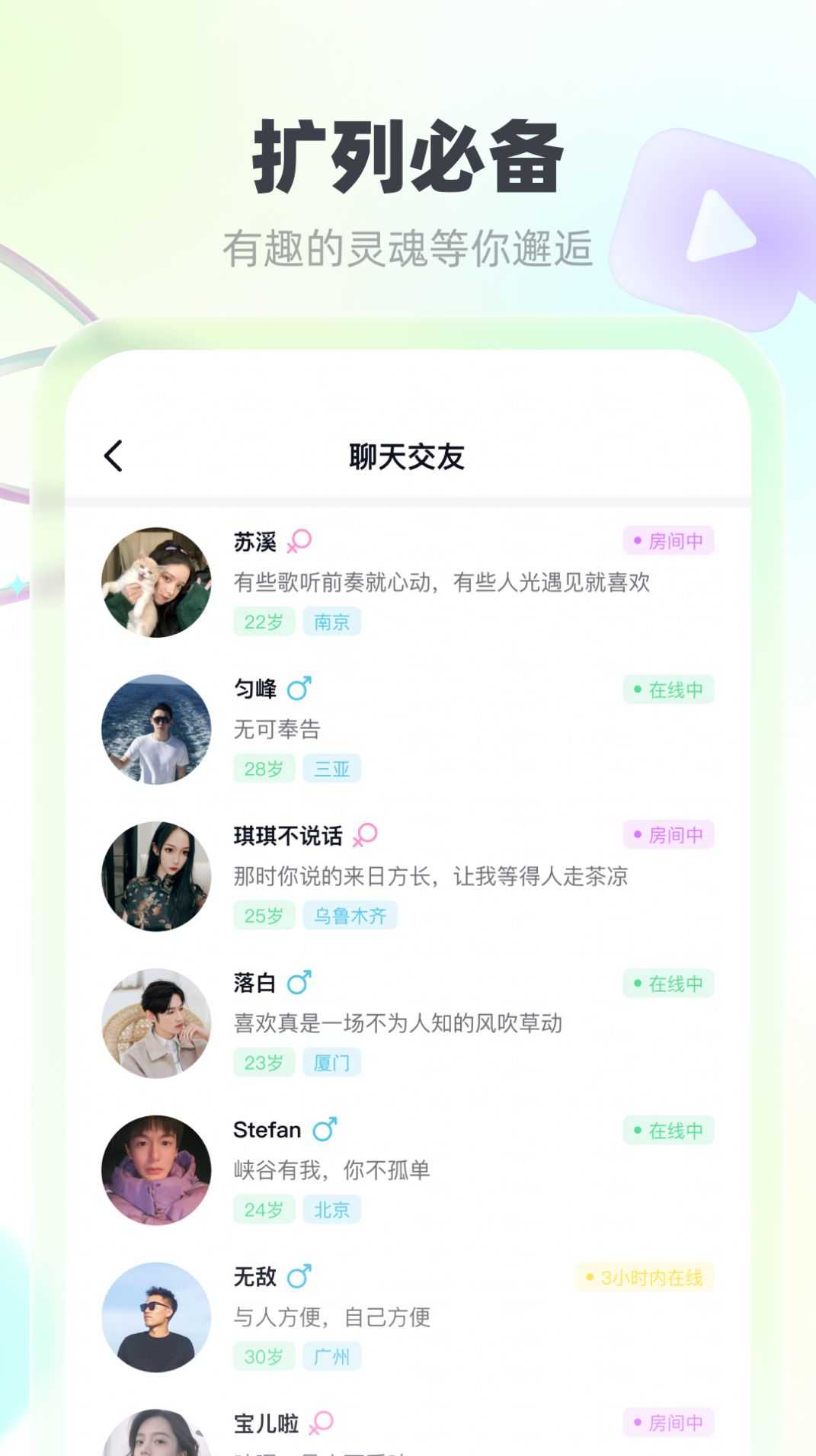 1、专注于真人互动的交友平台,真实玩家在线陪伴,每天都能认识新朋友。