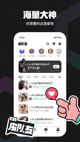 用户可以在线快速的选择自己喜欢的游戏进行开黑;