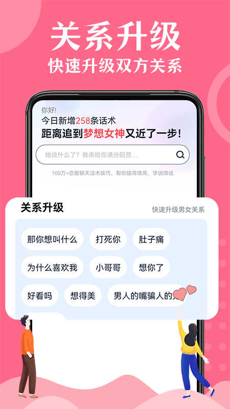 情话帮免费版是一款聊天助手应用程序,旨在帮助用户提高情商和聊天技巧,让聊天变得更加有趣和简单。该应用程序内置了大量的聊天话术和表情包资源,用户可以根据自己的需求在聊天中自由选择和使用。