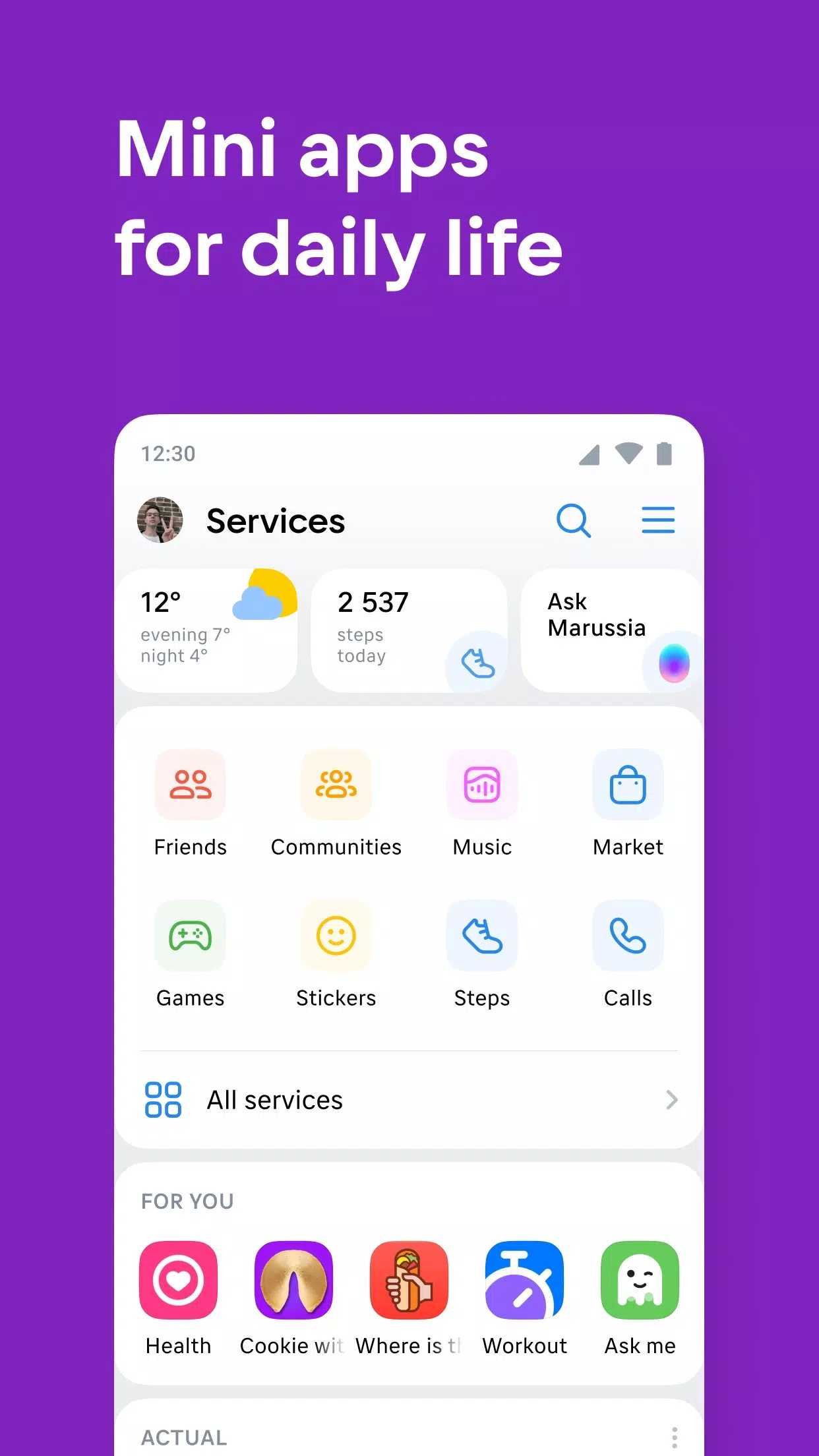 vk交友中文版软件中用户可以创建自己的个人主页,发布状态、图片和视频,与朋友分享生活点滴。同时,用户可以查看好友们的动态,并与他们进行互动。VK还提供了强大的搜索功能,用户可以在其中搜索用户、群组、歌曲、视频和照片等。