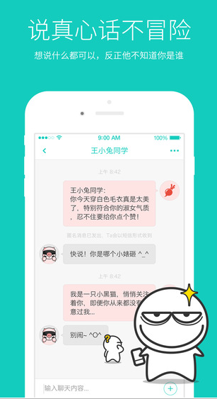 是一款匿名聊天软件,软件的好友选用手机通讯录,因此大家可以和好朋友以及熟人匿名聊天,不管你是表白、道歉还是开玩笑,都可以通过羞小白来你传达,帮助大家说出心中想说的话。