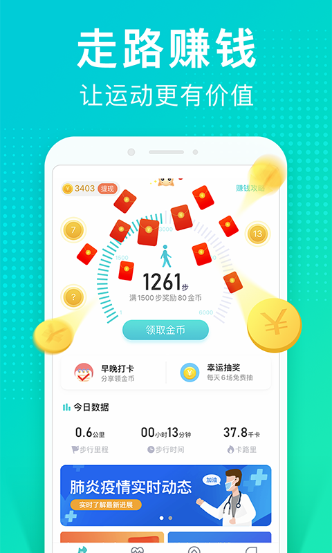 每天走的运动步数可转换成真实的现金收益,走得越多,挣钱越多!