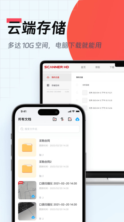 只需要登录并把文件上传到云盘,就实现了多设备同步。在联网状态下,登陆官网,就能看到云端的文档,实现了随时随地扫描,随时随地同步。
