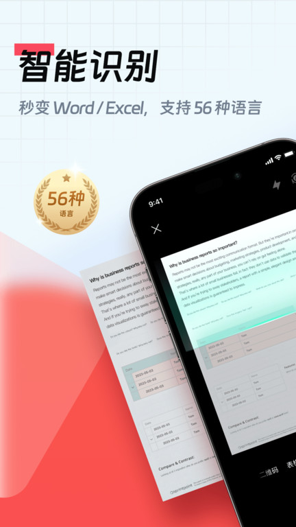 只需手机摄像头就能将收据、发票、会议记录或者名片电子化,实现无纸化办公。