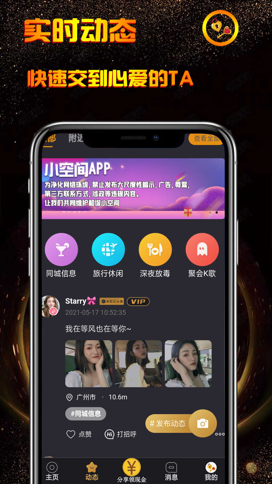5、随时随地发布你的动态,让心仪的她看见。