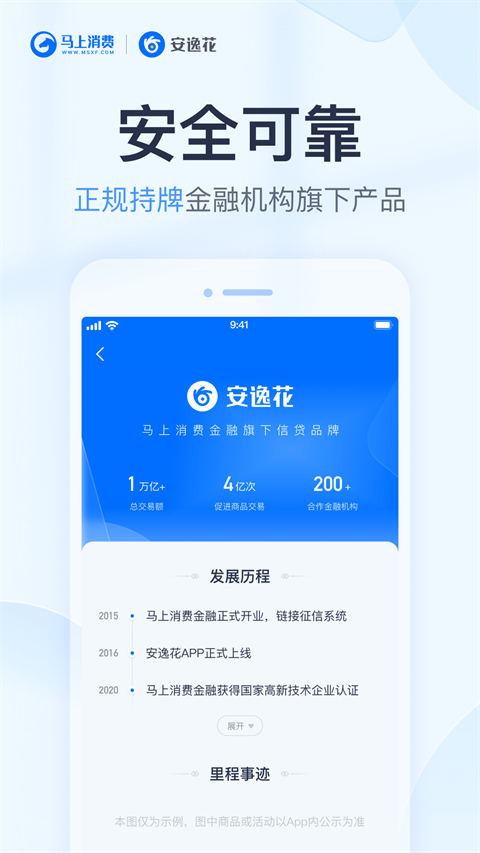 安逸花是一个借贷分期平台,借钱流程非常简单,无需抵押和担保。同时,安逸花是消费金融公司马上金融的贷款平台。马上金融拥有正规的消费金融牌照,受到中国银保监会的严格监督管理。从平台背景来看,安逸花平台是正规可靠的。