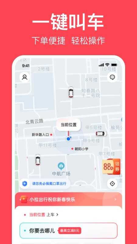 4、小拉出行是一款方便用户出行的叫车软件。通过该系统,用户可以在线制作约车订单,并在原地等待车辆接驾。