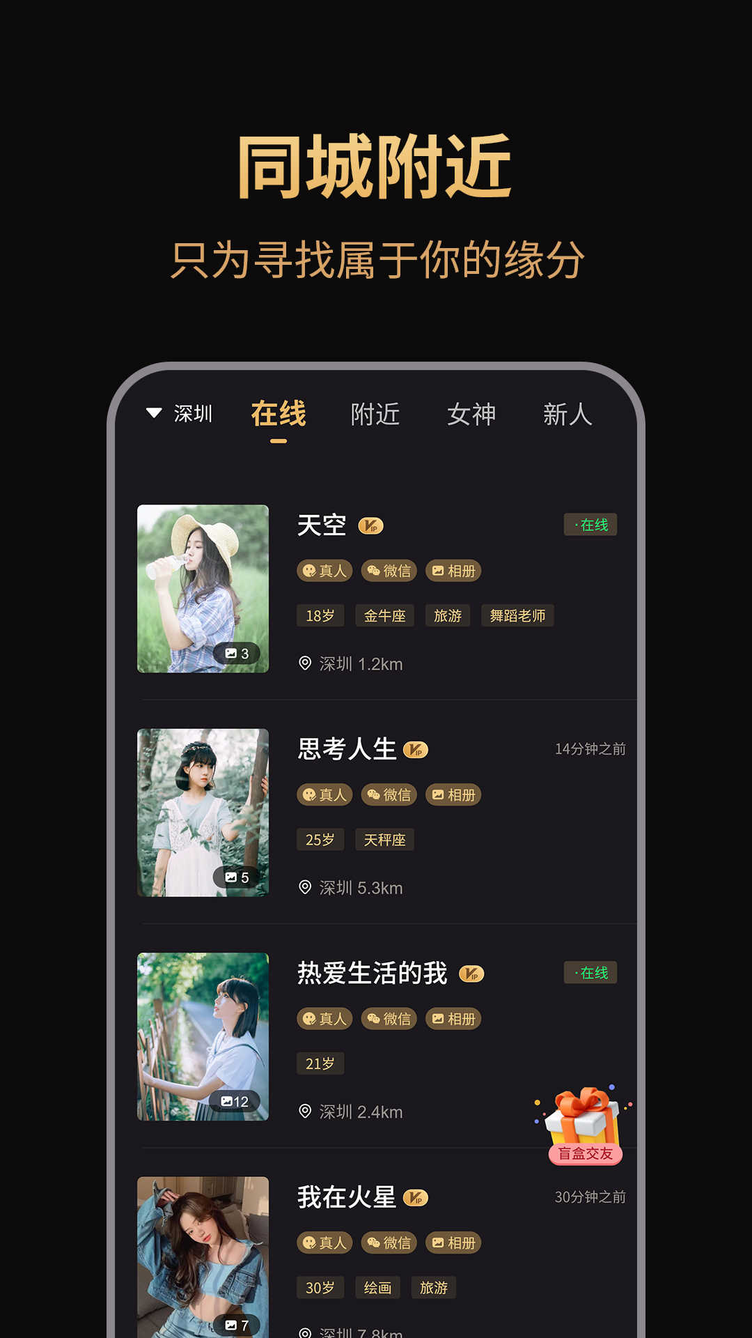 1、借助精准的定位服务,奢甜交友能够智能推荐附近的用户,大大提升你的交友效率;