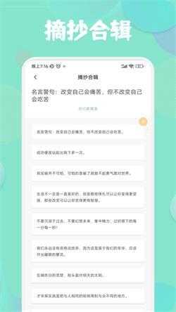 2、用户选好心仪的摘抄文案后,可将其全部录入摘抄合辑中,融合学习其中的精髓;