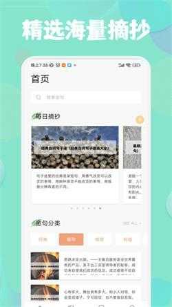 4、首页设有每日摘抄区块和金句分类区块,方便用户快速选择所需内容,提高使用效率;