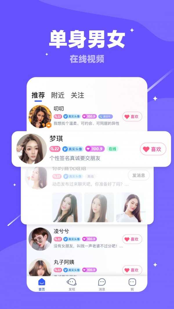 3、地理位置功能:随时随地发现身边的异性和趣味活动,在现实生活中找到志同道合的伙伴。