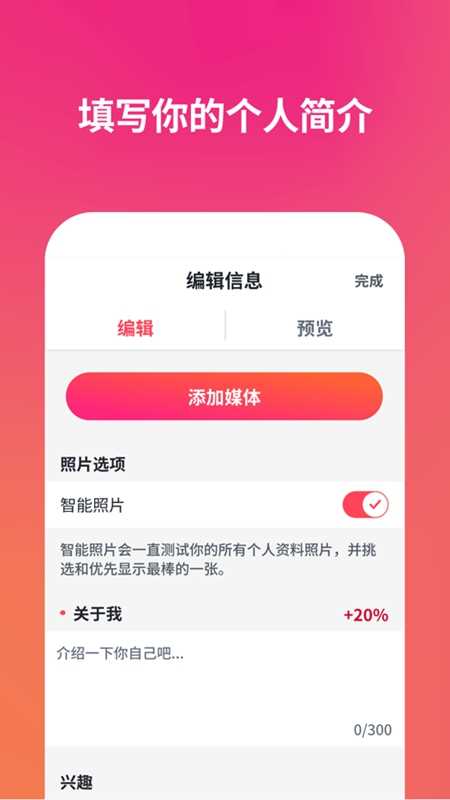 2.个性化展示:用户可自定义个人资料,上传照片并添加兴趣标签,展现真实自我。