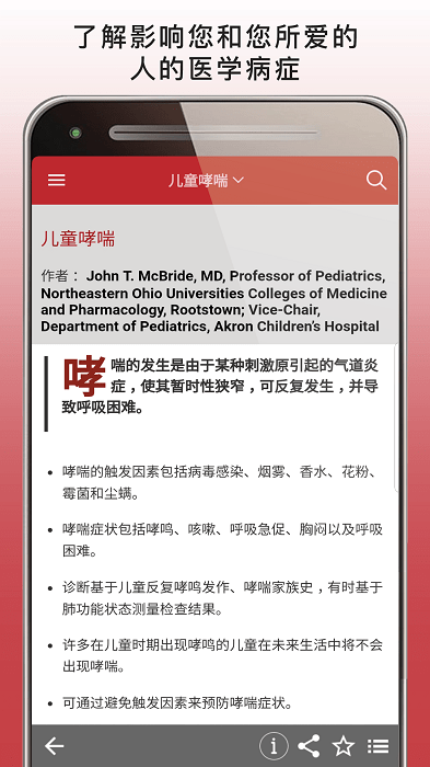 应用程序提供: ? 健康和医学信息 ? 主题(可按症状、诊断或治疗搜索) ? 照片和插图 ? 动画* ? 互动小测验* * 需要连接互联网。