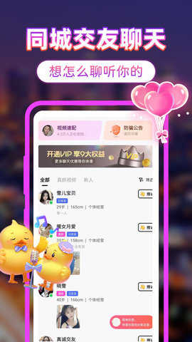 附近聊真爱app是一款高效的社交互动工具,功能十分强大。它能够帮助用户轻松找到志同道合的聊天伙伴,告别孤单时光,特别适合单身人士使用,助你快速邂逅心仪的另一半。除了线上交流外,还提供了丰富多彩的线下社群活动,等待你的参与。