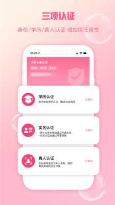 应用采用面部识别验证技术,确保用户的真实性,拒绝虚假照片。实名和学历双重认证,让你在交友过程中充满安全感”。