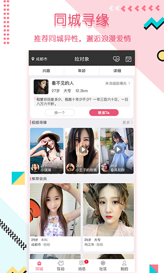 【同城寻缘】定时推荐附近、同城在线寻爱的单身与您聊天交友,助您觅得真爱,找到合适自己的有缘人,让生活不在孤单寂寞;