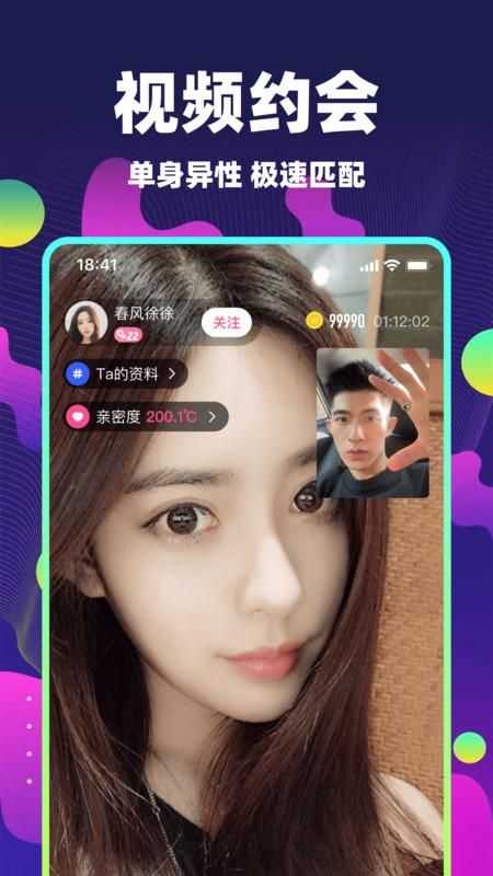 2、真人视频聊天,同城单身男女实时匹配,真实交友恋爱,杜绝照骗。