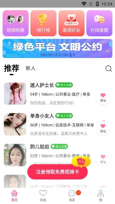 对伴交友是一款专为单身人士设计的交友应用,旨在帮助用户找到与自己心灵契合的另一半。通过智能匹配系统和多种功能,对伴交友软件为用户提供了一个安全、便捷、有趣的交友平台,让你能够轻松结识新朋友、寻找真爱。