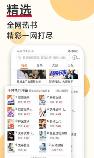 2、精选当前热门网络小说和畅销作品,精彩不断更新,等你来发现;